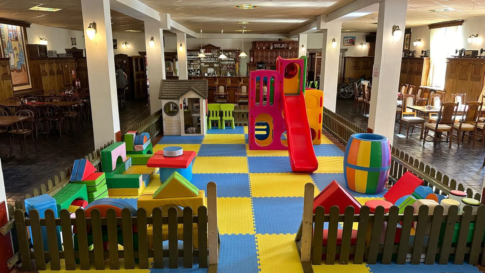 Hernička v restauraci a venkovní hřiště
