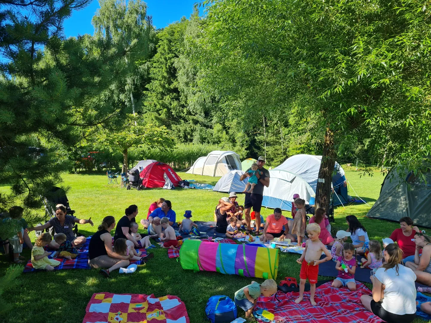 Čekají tě dny plné pohody, her a zážitků a večery s ostatními rodiči, kteří jsou na stejné vlně. Postavíme stany, zapojíme se do společných aktivit, užijeme si bazén i kouzelnou pohádkovou stezku. A večer? Opečeme buřty, zazpíváme si, popovídáme a užijeme si společně spoustu zábavy.