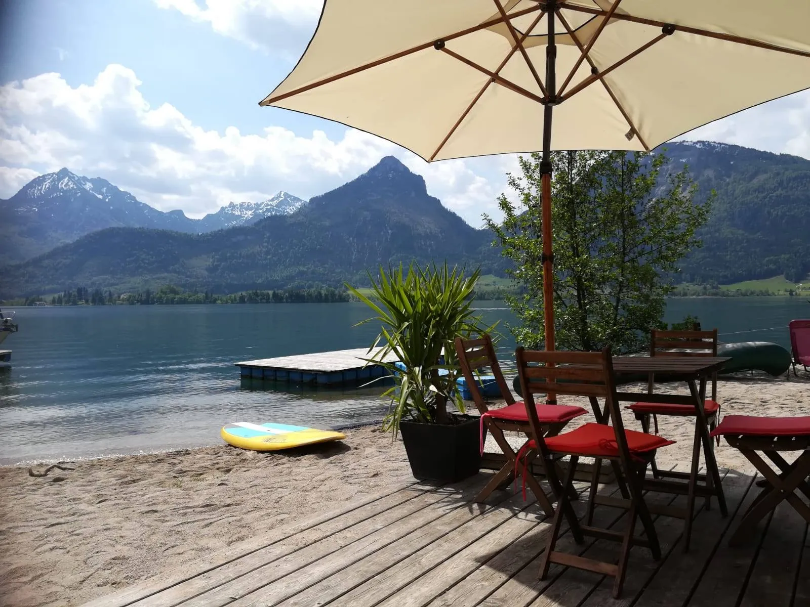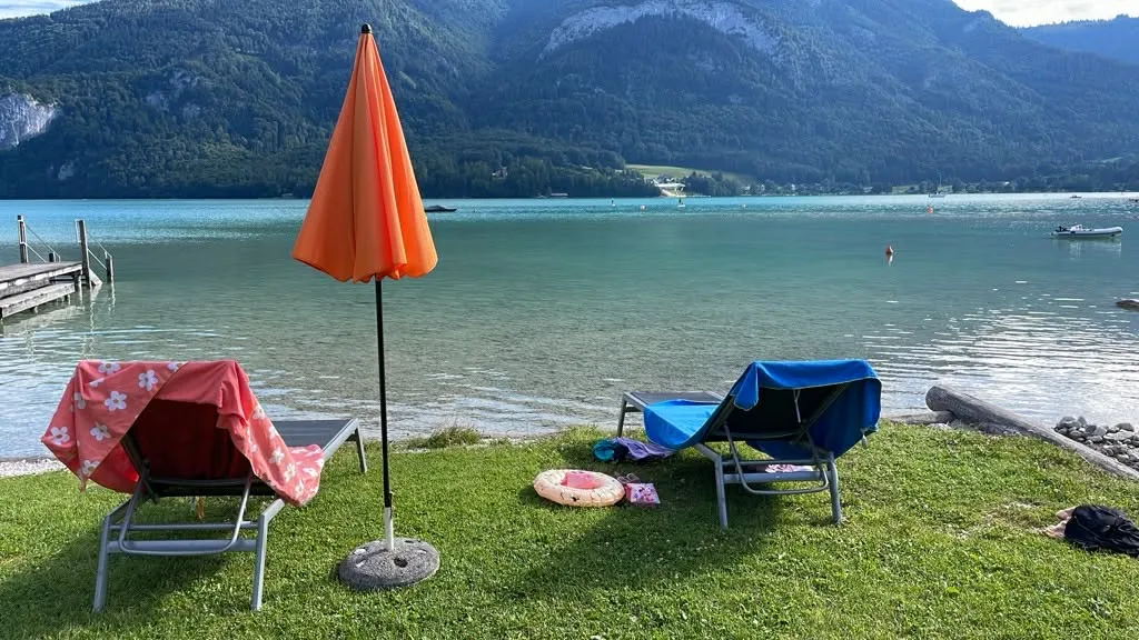 Přímo na břehu jezera Wolfgangsee s přímým vstupem do vody a krásným výhledem na alpské hory